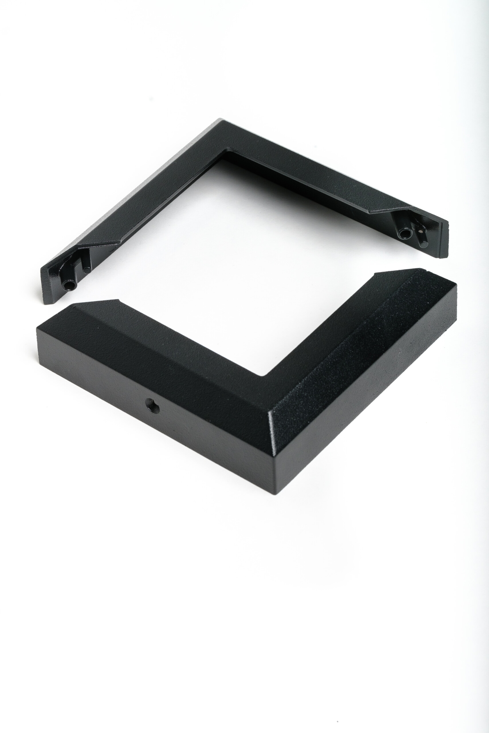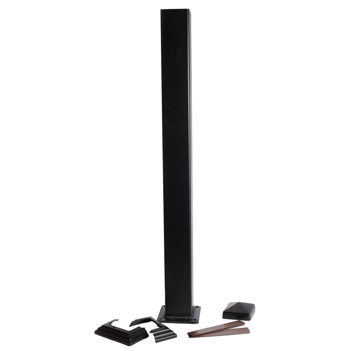 Post with welded flange kit includes 1-7/8″ Pyramid Post Cap, a 2-piece base cover, 2 composite leveling shims and instructions.